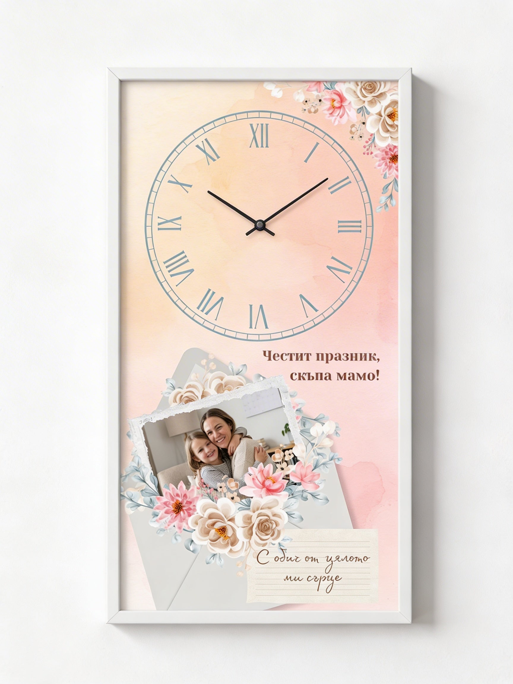 Подходящ за всекидневна, спалня или като подарък за 8-ми март, този часовник не просто измерва времето, а пази емоциите и най-ценните спомени.